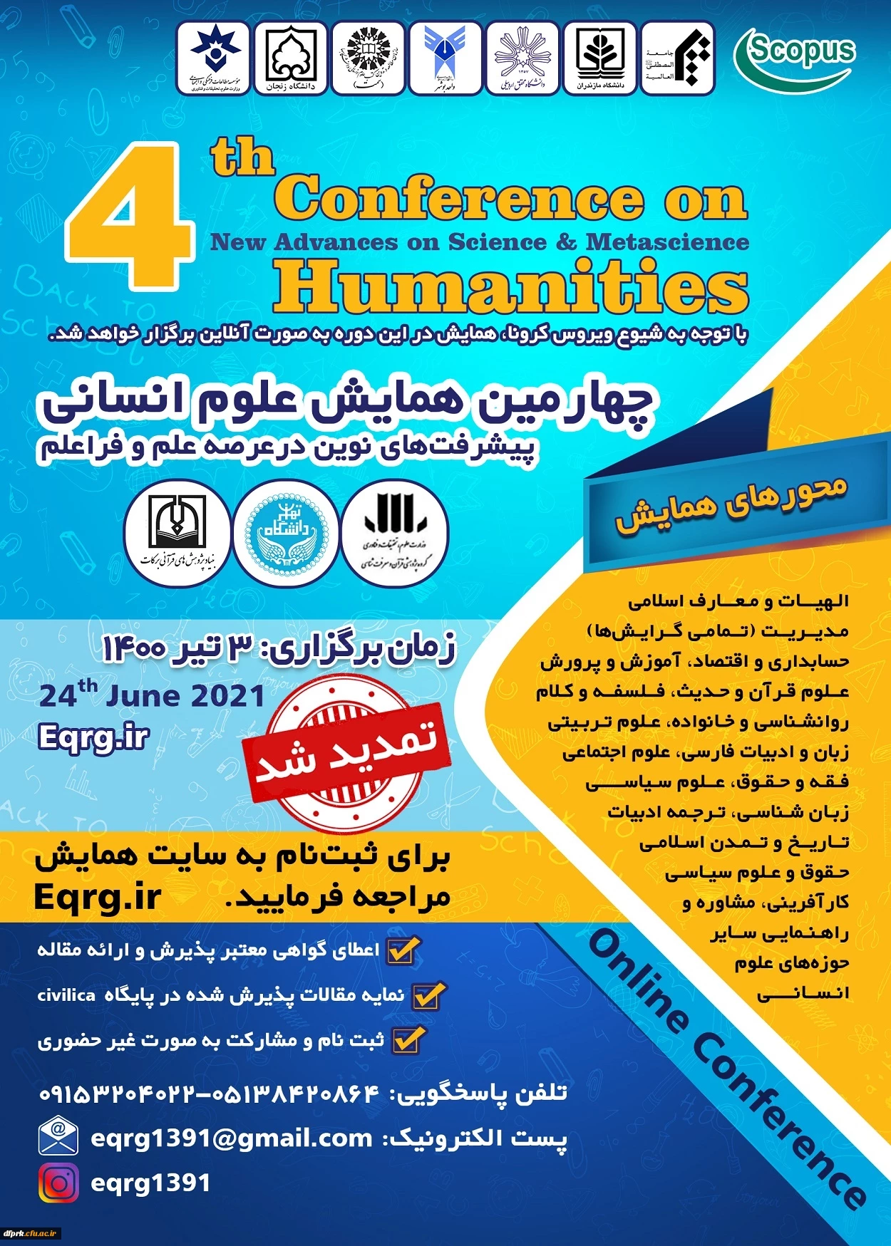 " چهارمین همایش ملّی پیشرفتهای نوین در عرصة علم و فراعلم" بصورت وبینار تا سوم تیرماه تمدید گردید.