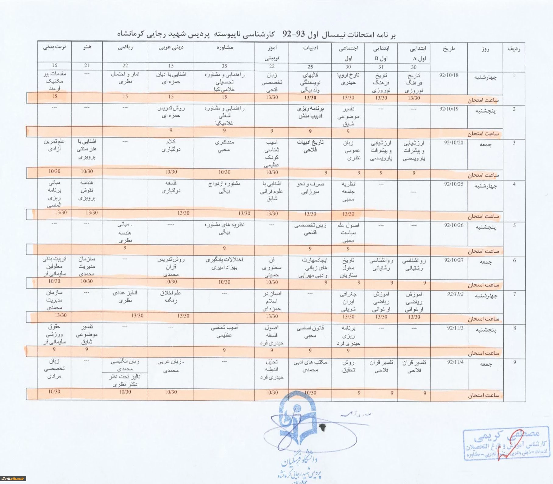 برنامه امتحانات نیمسال اول 92/93 کارشناسی ناپیوسته