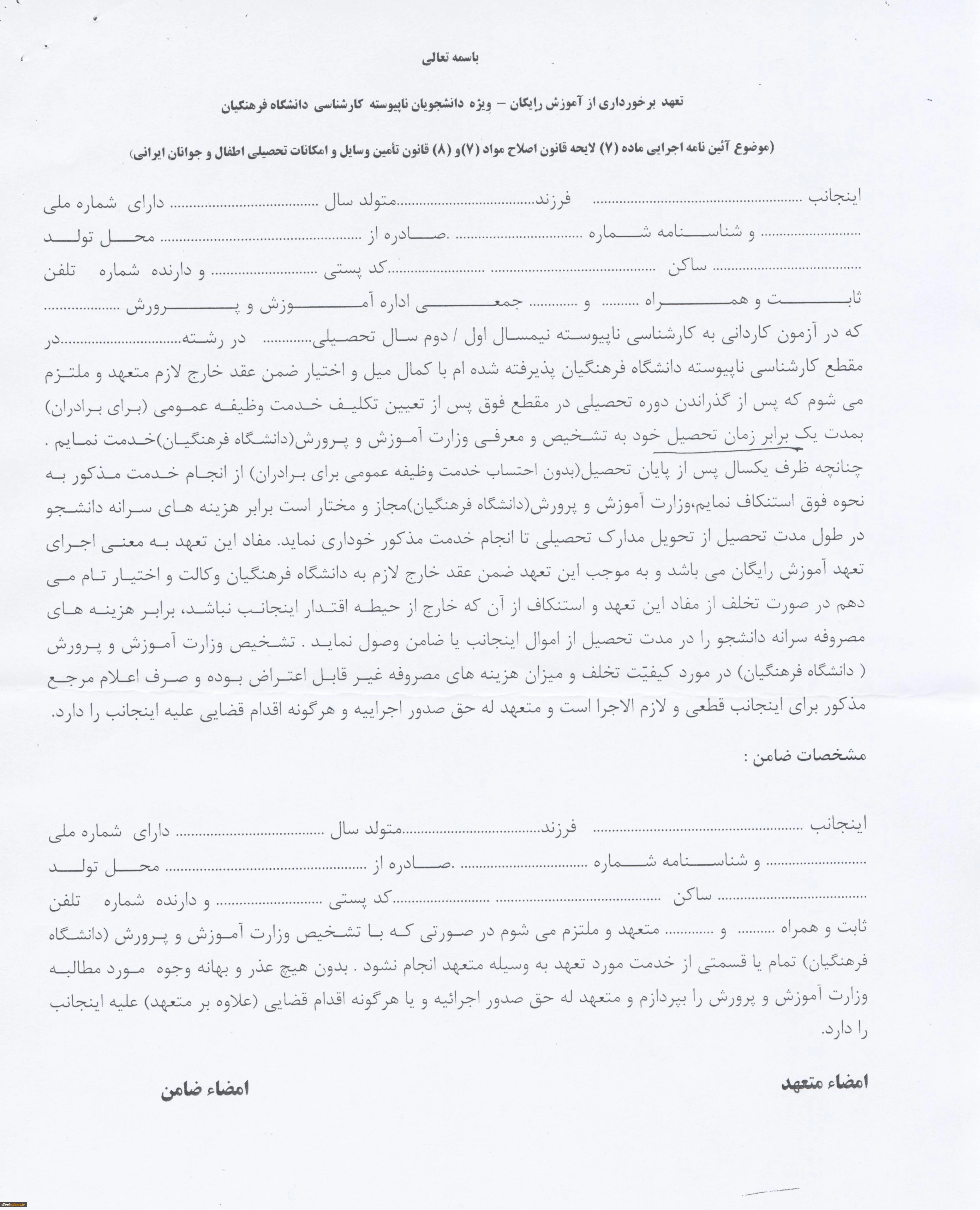 تعهد محضری دانشجویان کارشناسی ناپیوسته