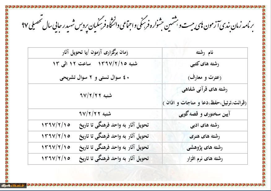 امتیاز دهید : برنامه زمان بندی آزمون های بیست وهشتمین جشنواره فرهنگی واجتماعی 2 شنبه 8 اردیبهشت 1397 ساعت 12:53