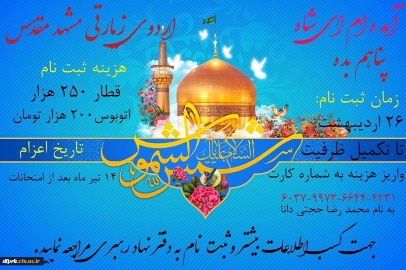ثبت نام اردوی زیارتی دانشجویان به مشهد مقدس 2