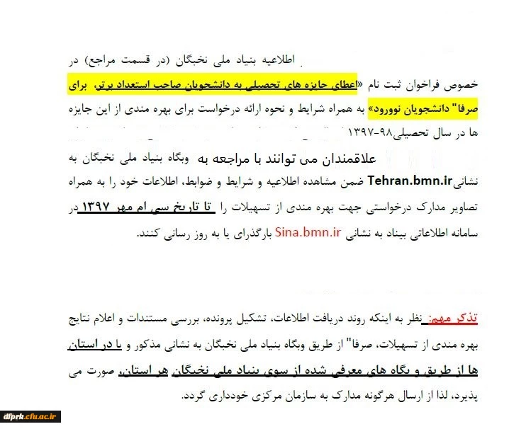 امتیاز دهید : اعطای جایزه های تحصیلی به دانشجویان جدید الورود صاحب استعداد برتر 2 سهشنبه 17 مهر 1397 ساعت 11:59