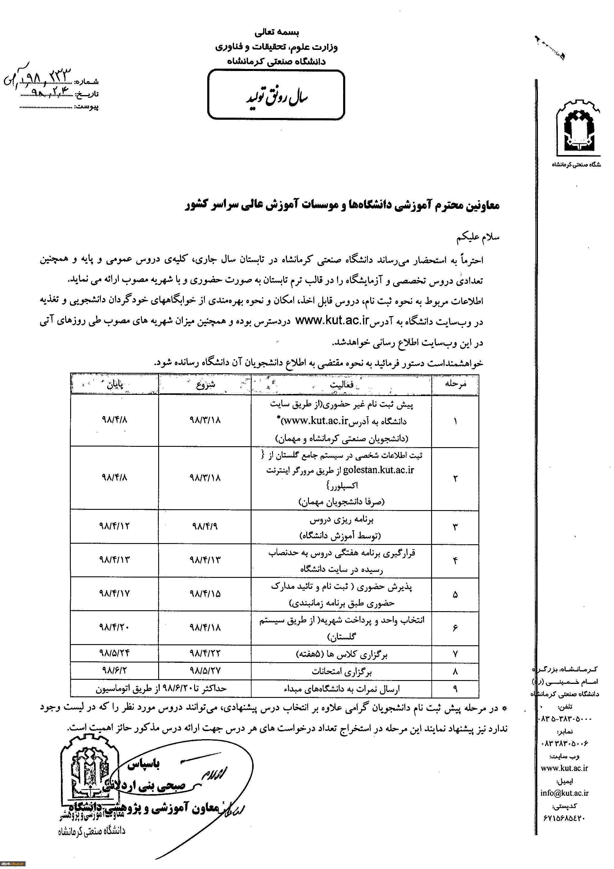 اطلاعیه دانشگاه صنعتی کرمانشاه 2