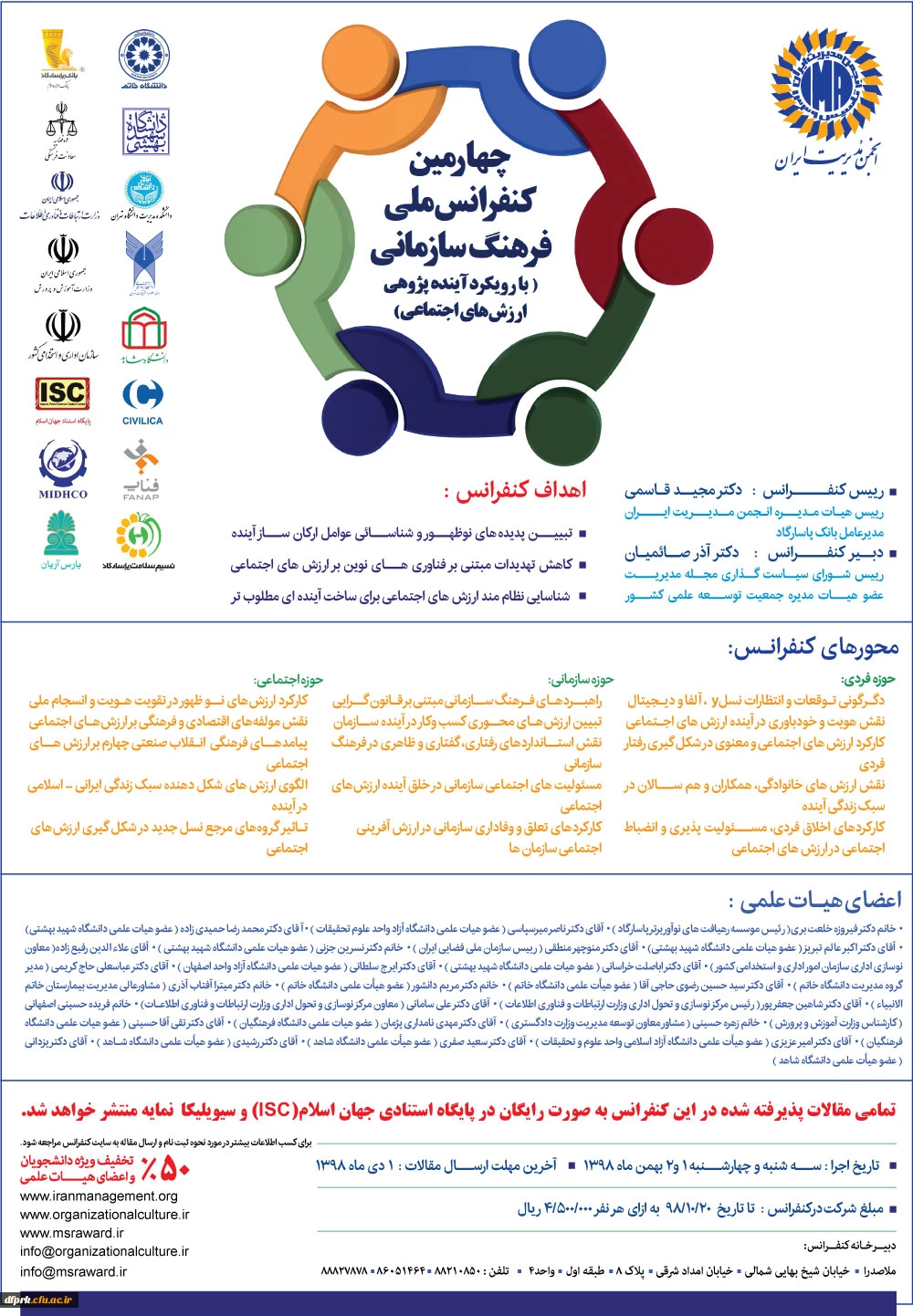 فراخوان چهارمین کنفرانس ملی فرهنگ سازمانی با رویکرد آینده پژوهی و ارزش اجتماعی 2