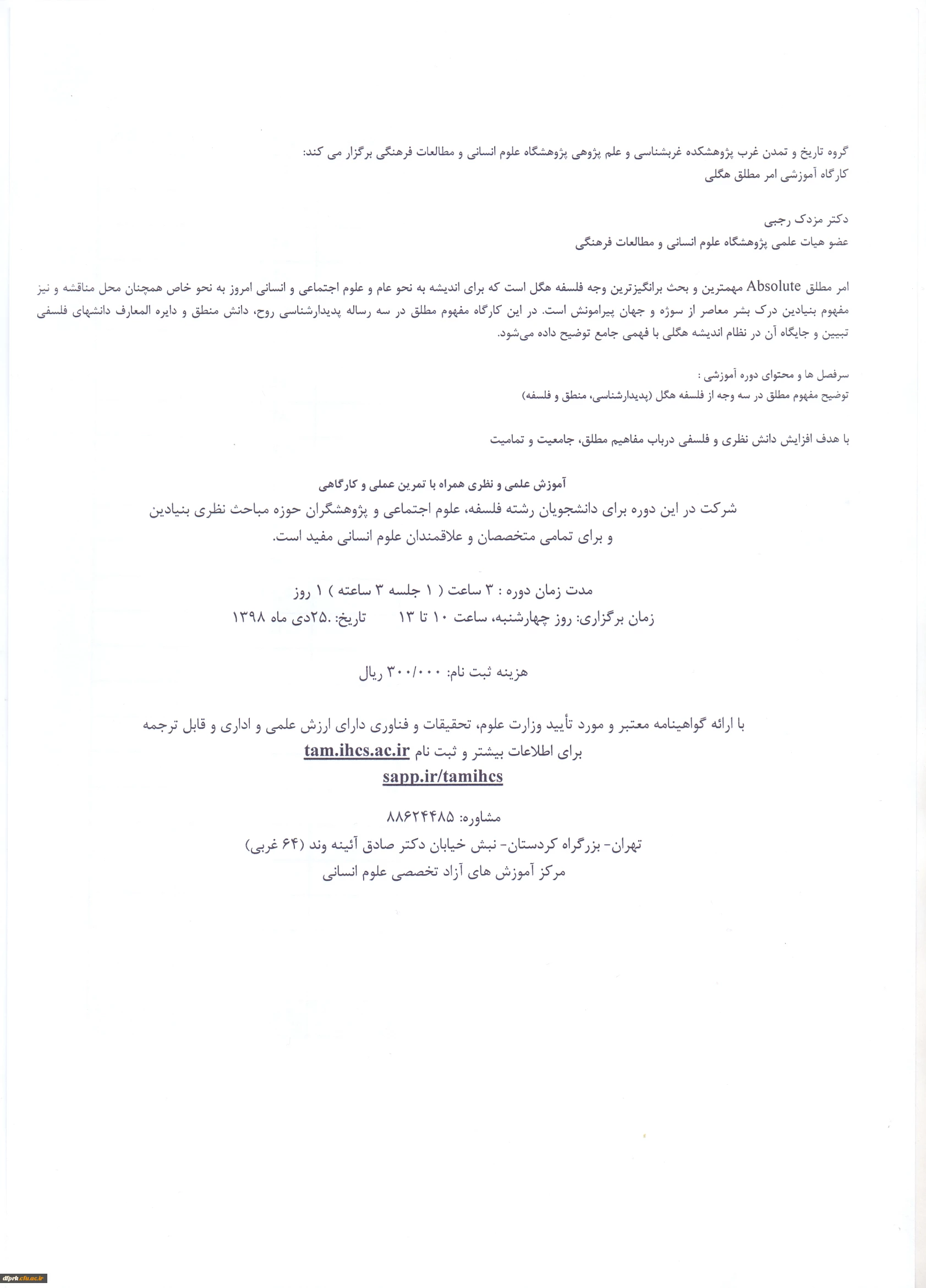 فراخوان برگزاری دوره آموزشی امرمطلق هگلی 2