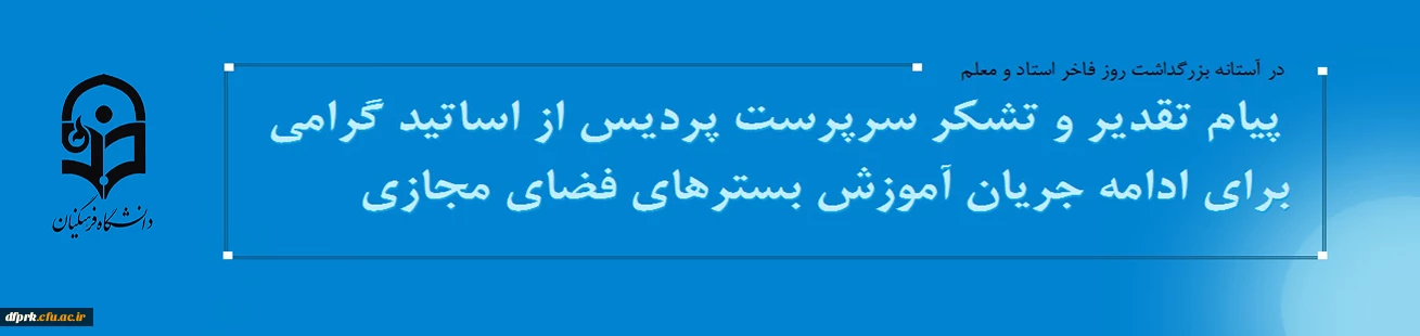 پیام تقدیر و تشکر سرپرست پردیس از اساتید گرامی برای ادامه جریان آموزش بسترهای فضای مجازی 2