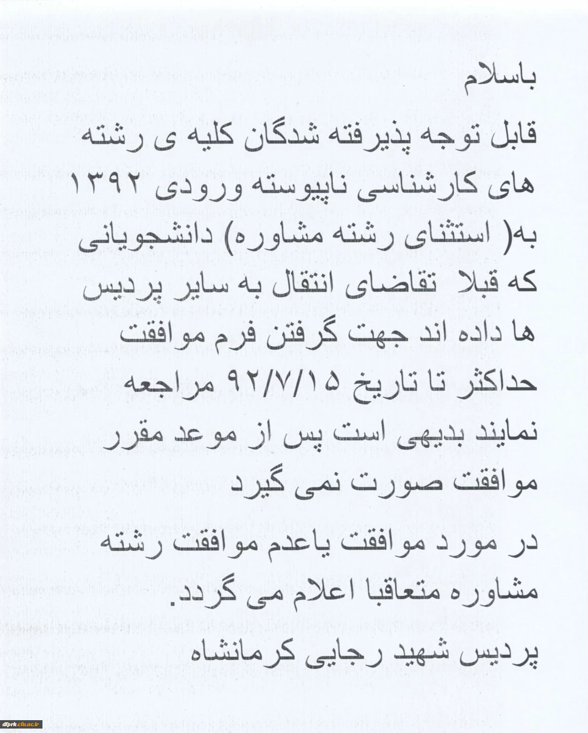 اطلاعیه انتقال دانشجویان کارشناسی ناپیوسته